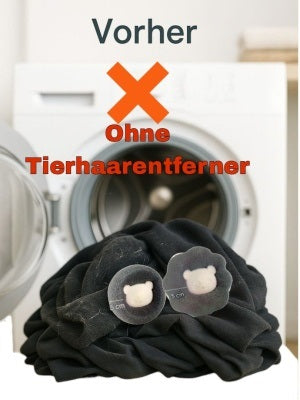 Links sehen Sie Wäsche ohne Tierhaarentferner, rechts dieselbe Wäsche nach der Nutzung unseres Super‑Haarfängers – sichtbar sauberer und nahezu ohne Tierhaare.