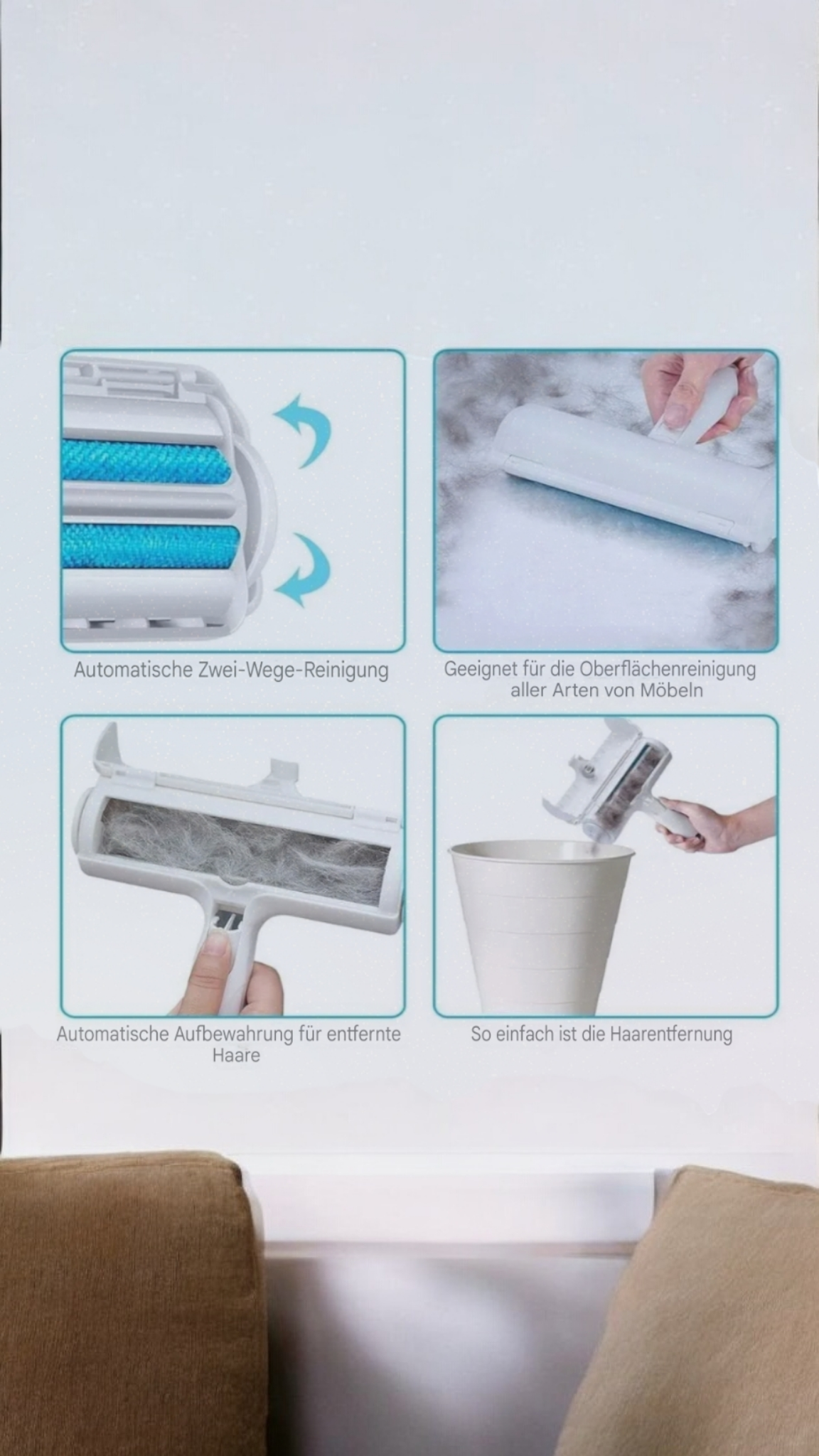 - Effizienz auf jedem Untergrund: Die Stoffrolle ist so konzipiert, dass sie Tierhaare und Fusseln leicht erfasst, ohne Oberflächen zu beschädigen.